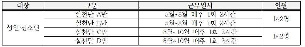 다. 교육대상: 천안시민 40명 (1개반 당 10명)