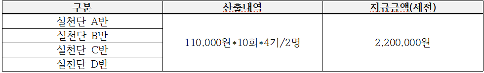 다. 강사비: 본 센터 규정에 준하여 강사비 책정, 원천징수 후 지급